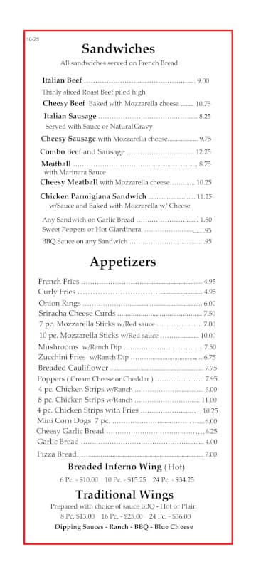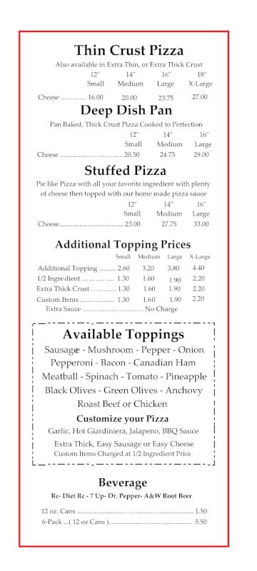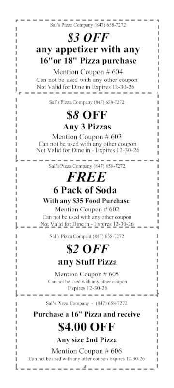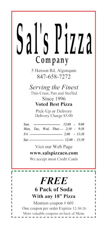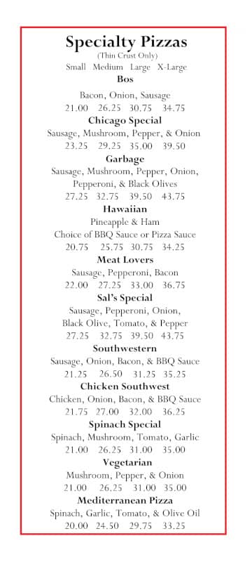 Sal's Pizza Company Menu
